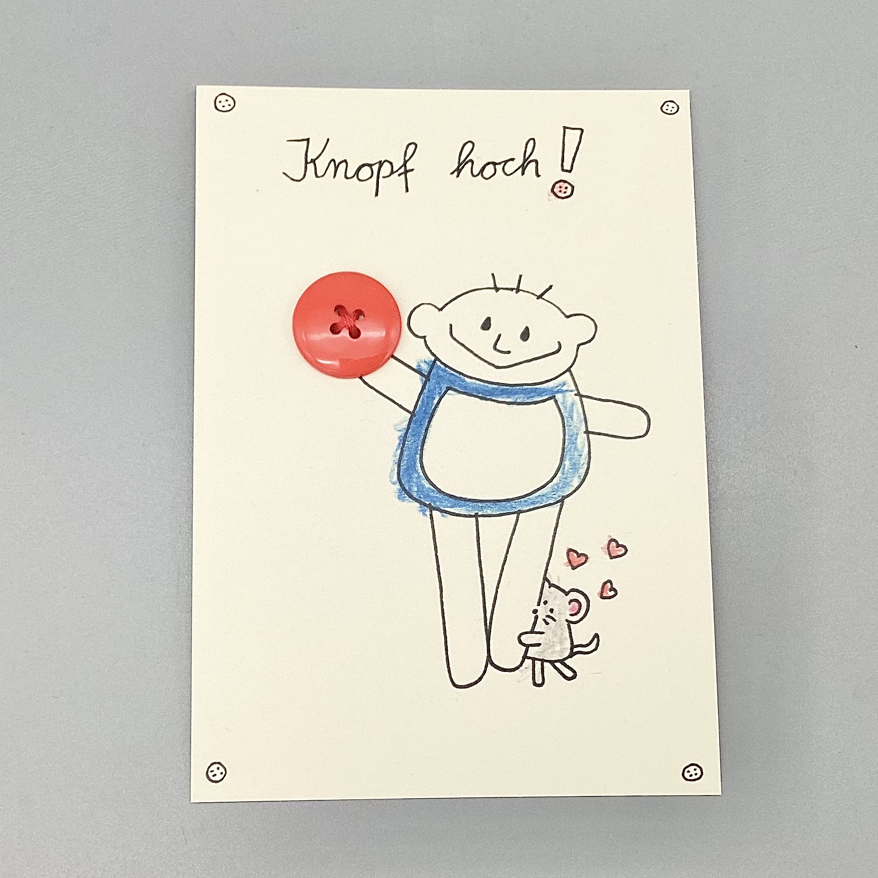 Knopf hoch ! Aufmunterungskarte Junge