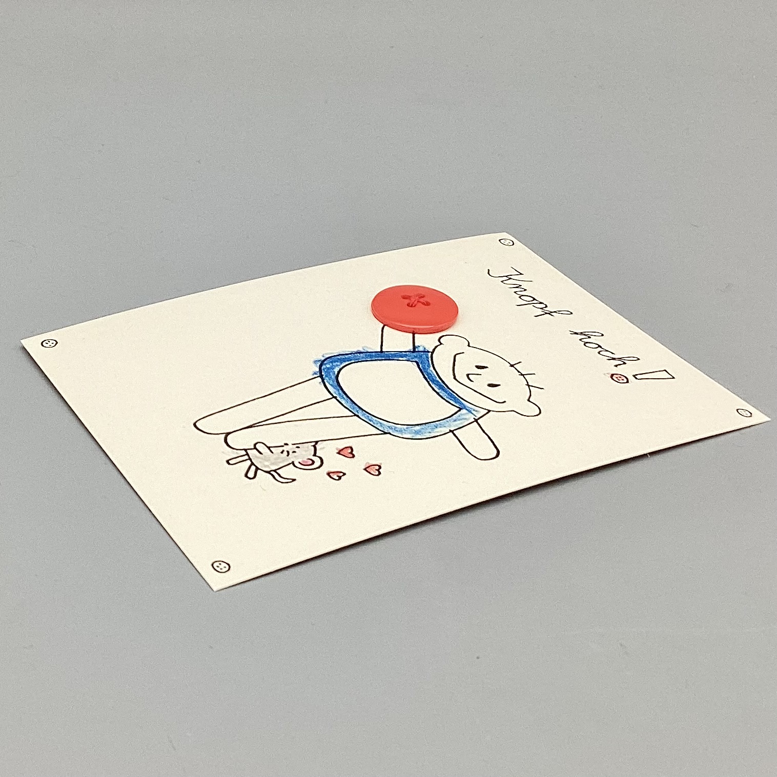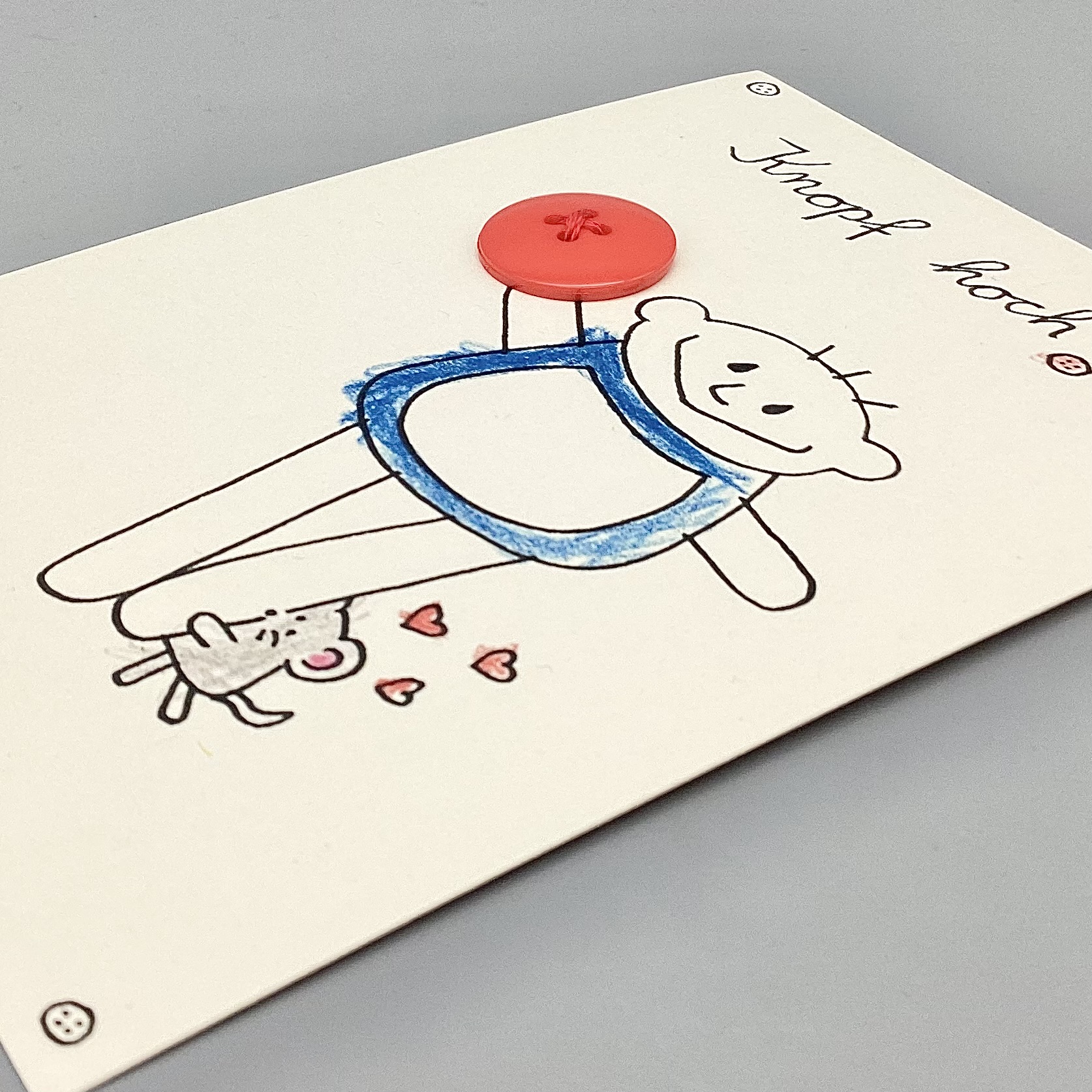❗️ Die Karte wird zusammen mit einem weißen Umschlag geschickt, um den an die Karte gebundenen Knopf zu schützen. Denn die Karte kann (wenn weitergeschickt wird) nicht ohne Umschlag verschickt werden ( sonst Verlust des Knopfes möglich )