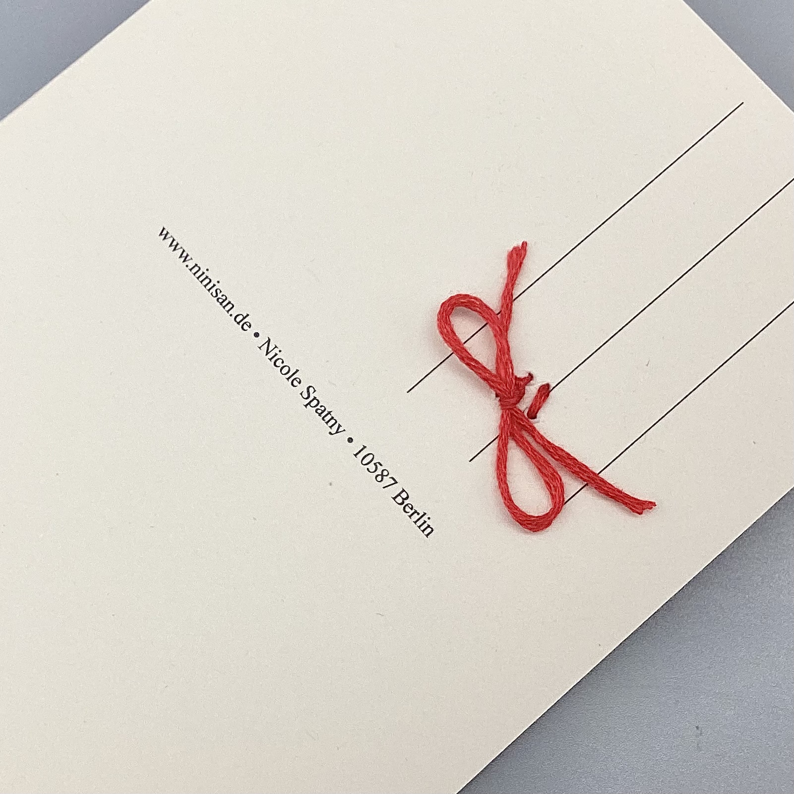 Der rote Knopf ist genau am Adressfeld zugeknotet und würde die Versandadresse bei der Post stören.❗️